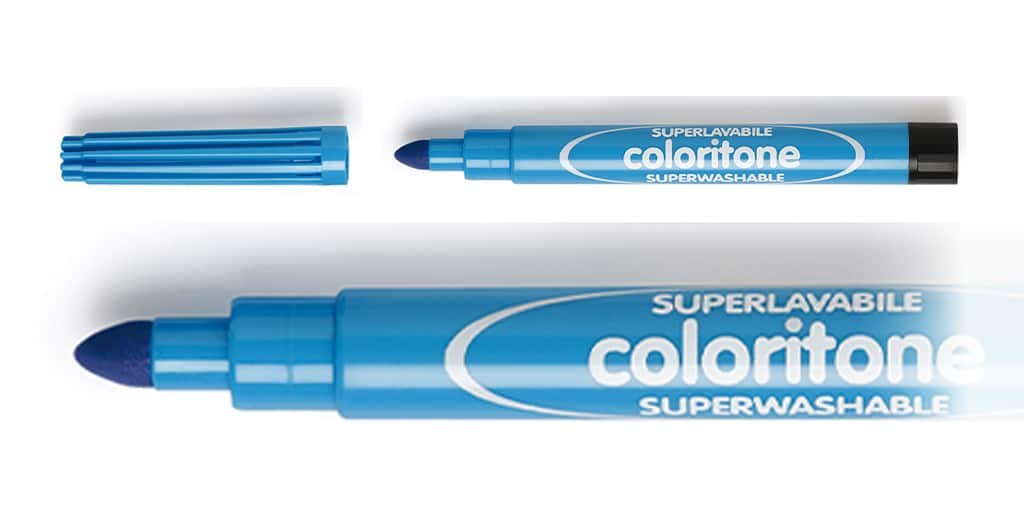 Super-washable water-based ink removes easily from skin and fabrics. Vented cap ensures safety, Due to their high strength and long life, Coloritones are ideal for school, art activities and creative workshops.