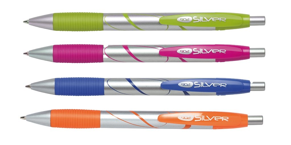 Penna a scatto con punta media e impugnatura antiscivolo. Disponibile in diversi colori di scrittura, perfetta per l’uso quotidiano.