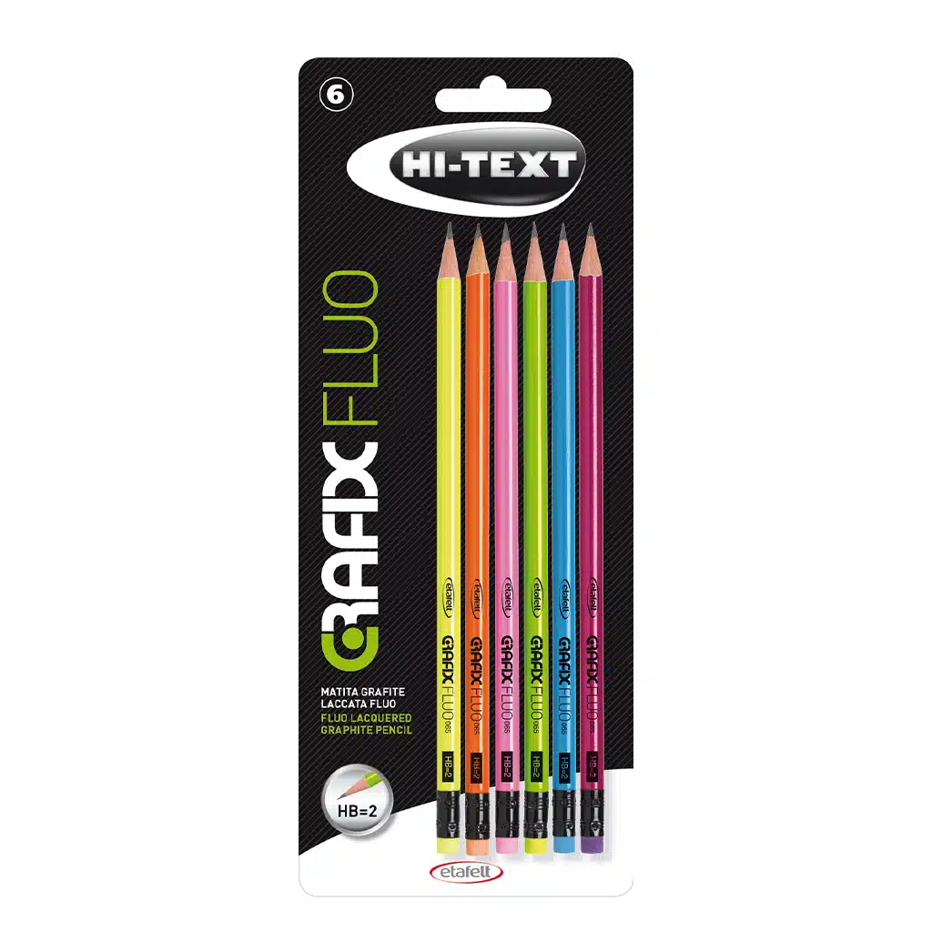 065 Grafix Fluo è progettata per offrire una scrittura fluida e precisa, combinando funzionalità e stile. La sua mina in grafite HB=2 di alta qualità garantisce tratti uniformi, mentre la finitura laccata in colori fluorescenti aggiunge vivacità al tuo kit di cancelleria. La gomma integrata consente correzioni rapide, rendendola ideale per l’uso quotidiano sia a scuola che in ufficio.