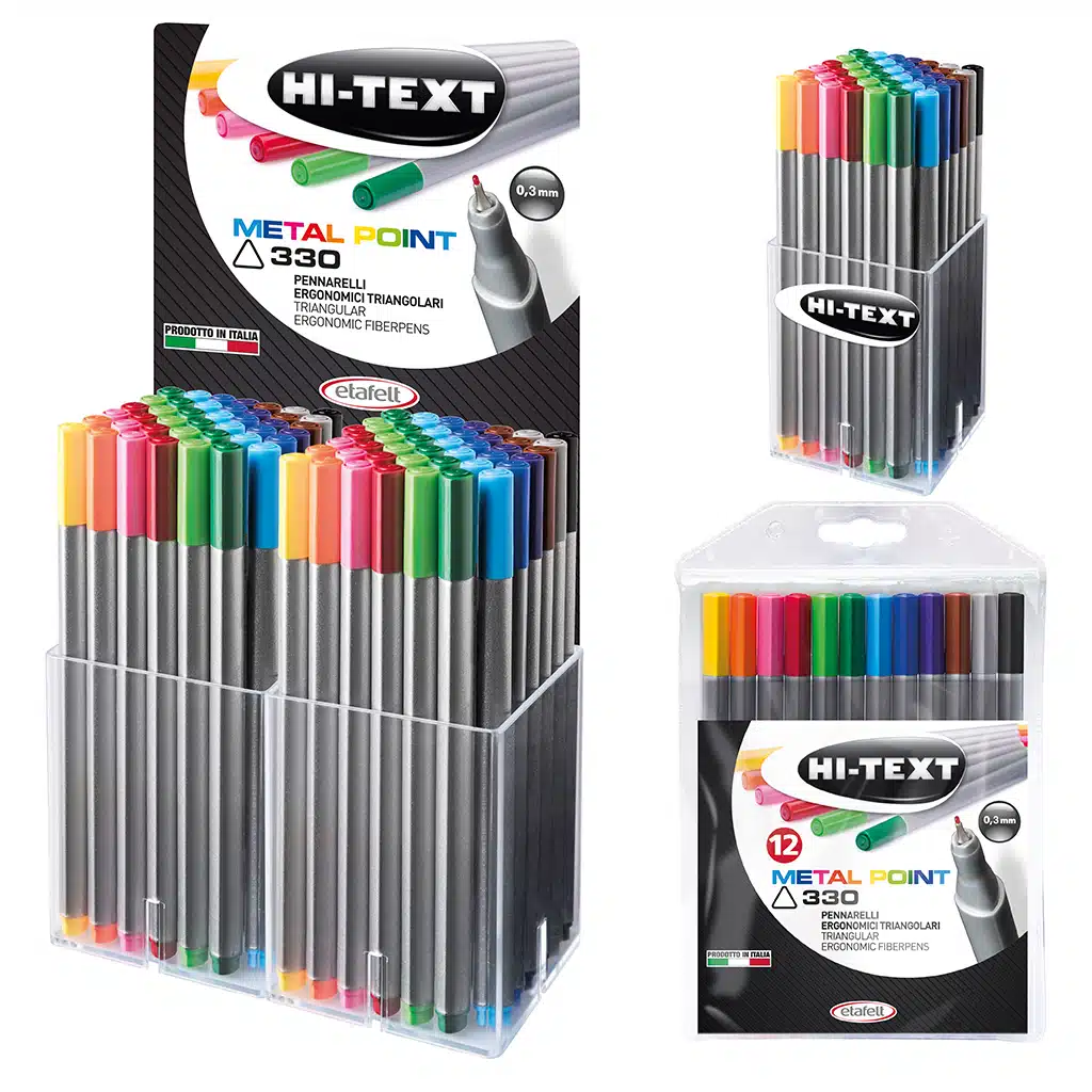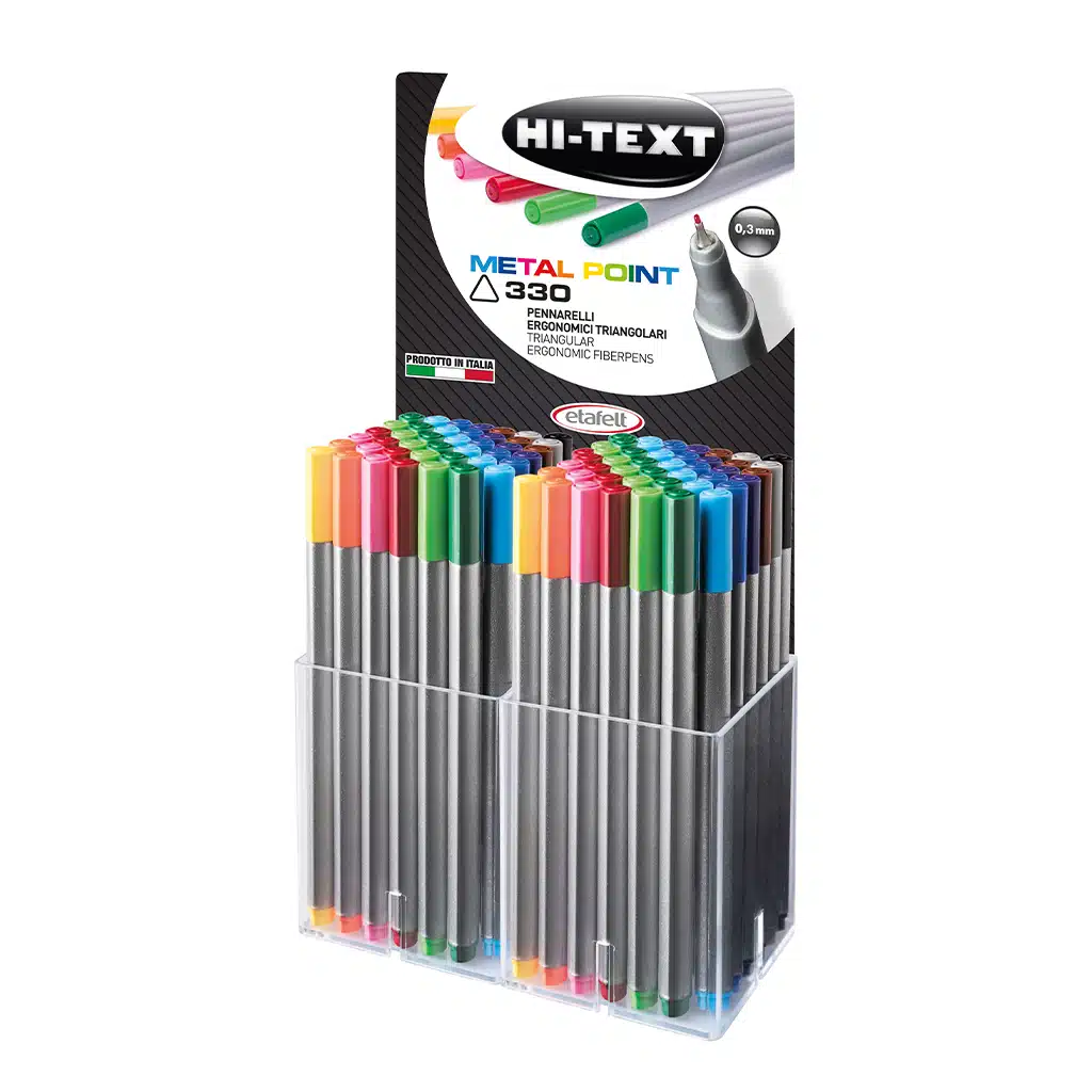 330 Metal Point combina eleganza e funzionalità, offrendo una scrittura fluida e confortevole. Il suo corpo triangolare offre un’impugnatura ergonomica corretta e confortevole anche per gli utilizzi prolungati, mentre la punta da 0,3 mm garantisce tratti precisi e uniformi.
