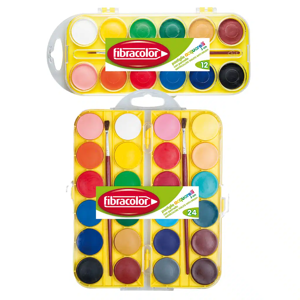 - Formato: Set da 12 e 24 pastiglie colorate