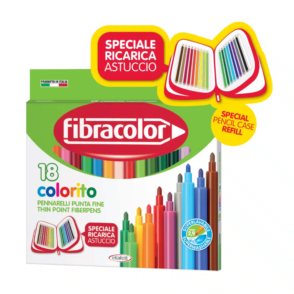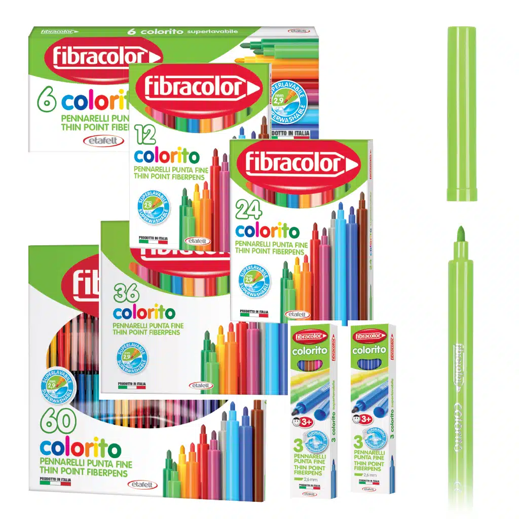 Colorito è la linea di pennarelli versatile e affidabile, pensata per ogni occasione creativa. Dotati di una punta fine resistente, questi pennarelli offrono tratti precisi e uniformi, ideali per disegni, colorazioni e scrittura. Grazie al loro inchiostro super lavabile a base d’acqua, sono sicuri per i bambini e facilmente rimovibili da pelle e tessuti. Il cappuccio ventilato garantisce sicurezza, mentre la formula inodore rende questi pennarelli perfetti per un uso prolungato. Disponibili in una vasta gamma di colori vivaci e brillanti, i Colorito sono perfetti per l’uso scolastico, domestico e creativo. La scelta ideale per bambini, studenti e appassionati di arte.